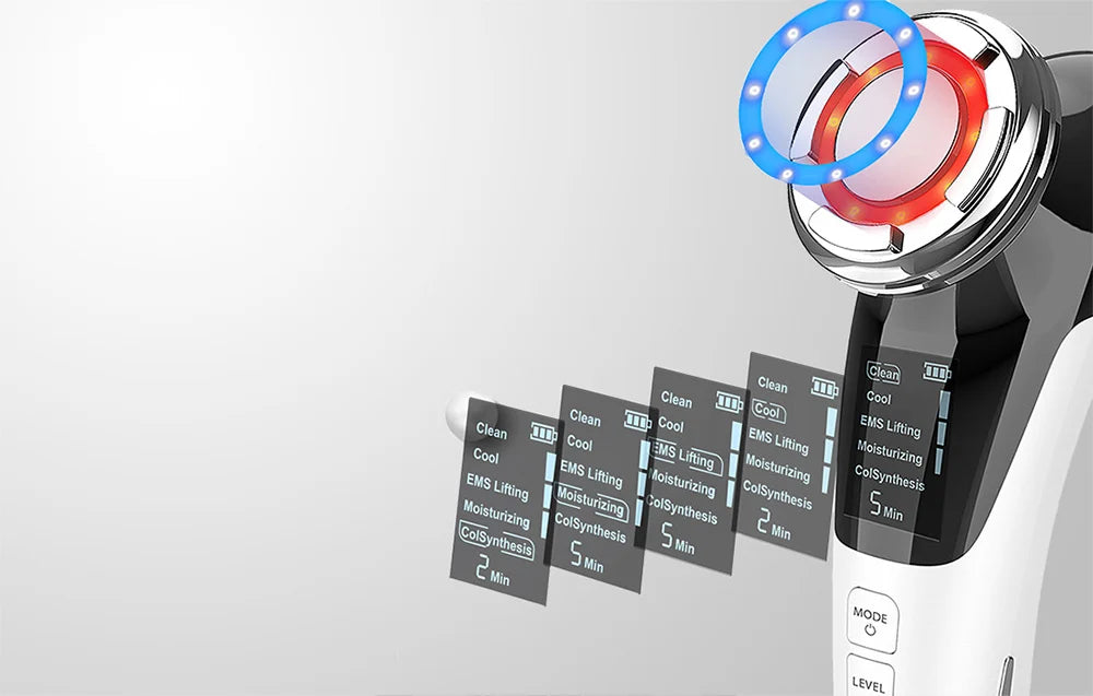 Tudja meg, hogy a fényterápia mennyi előnnyel járhat. A masszírozó készülék vörös vagy kék fénnyel dolgozhat a bőrön. A vörös fény növeli a bőr rugalmasságát. Megfeszíti azt és megelőzi a ráncosodást. A kék fény eltávolítja a baktériumokat, fertőtlenít és tisztít. Ennek eredményeképpen csökkentheti a bőrpírt, és segít a pattanások kezelésében is.